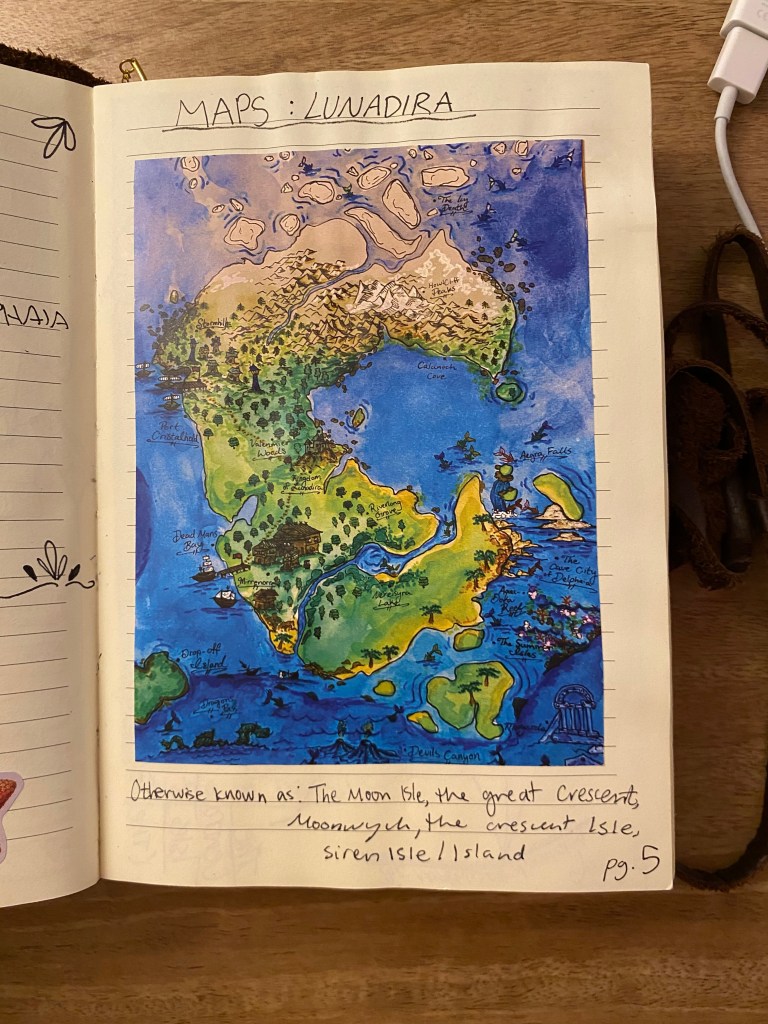 Having your the geography of your story in front of you is a must when writing. This is a hand drawn map but I also love Inkarnate.com for a user friendly digital map making experience.