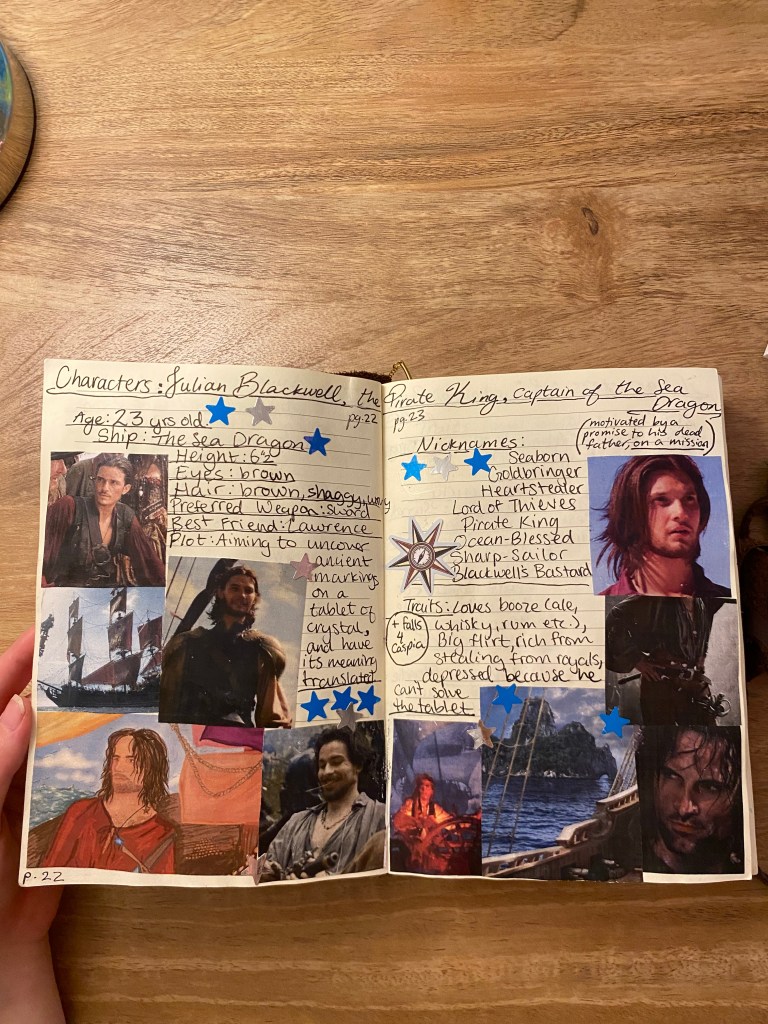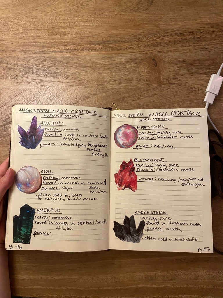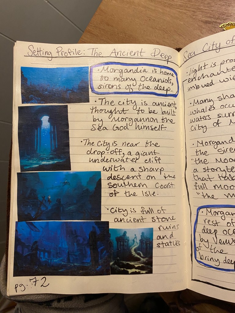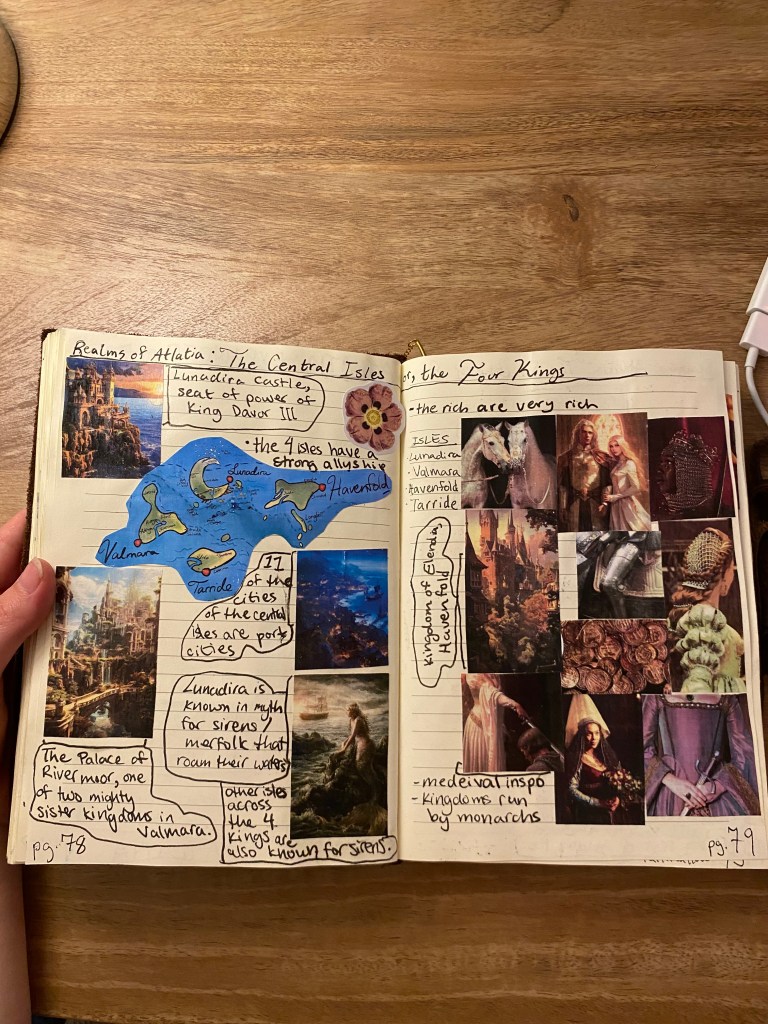 This method is comprised of acquiring a big journal to document all of the information about your book that floats around in your mind. It’s easy, it’s helpful, and my goodness, is it fun! If you’re curious, I am going to share the benefits of this method and how I made my book, so that I might help someone embarking on their own fantastical literary adventures.