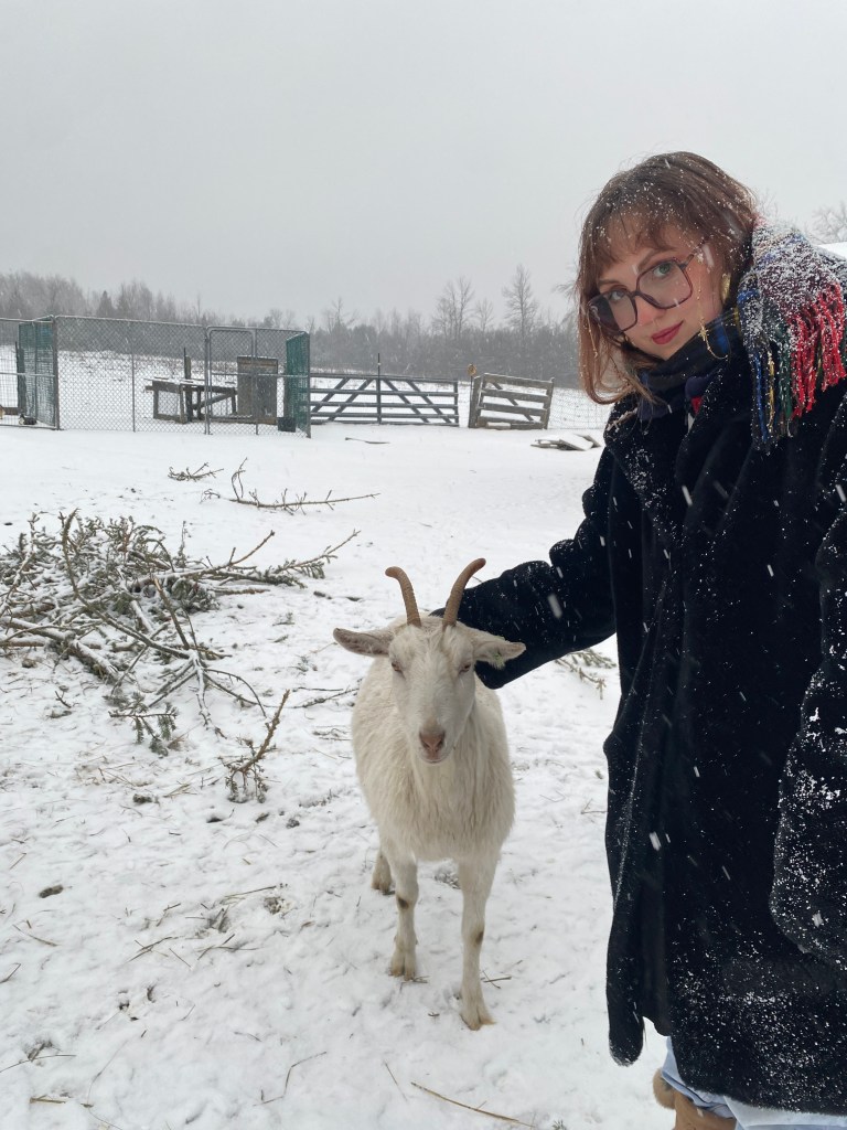 Aside from writing, reading, and making art, I am very passionate about animals, and love to spend my free time with my cats, Zophia and Twilight; or any animal friends I may run in to (Like this little goat.)