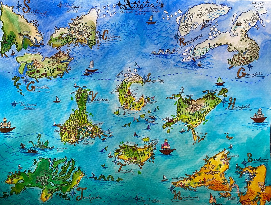This is the world of Atlatia, the setting where my fantasy story, Project Sea Witch, takes place. This world will act as the setting for four stories in the multi instalment project that I am calling Project Silver Tide.