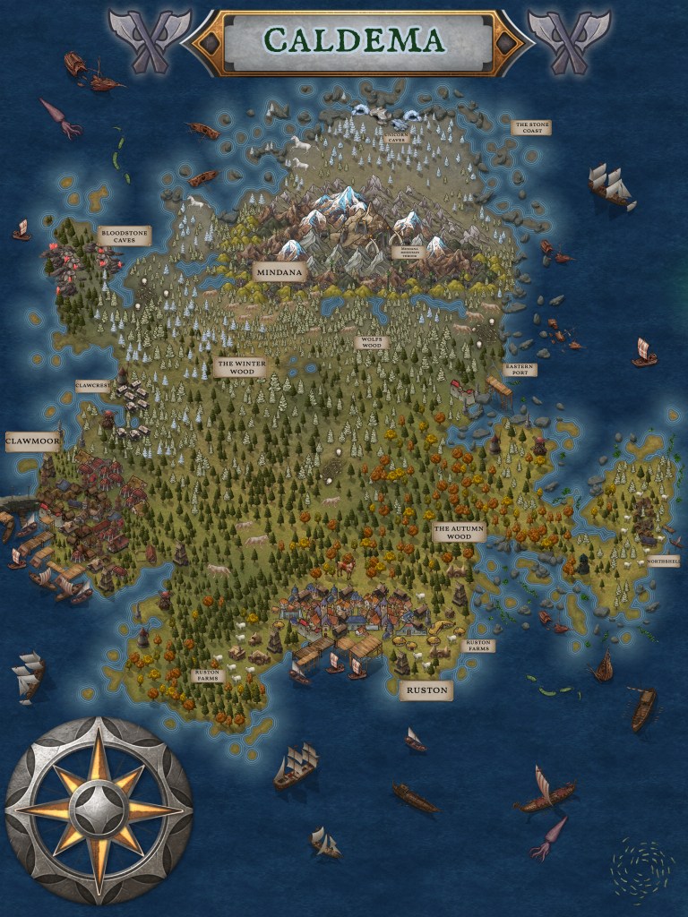 Last is Caldema, the wolf isle. The isle of Caldema is ruled by werewolves, who rule from an underground mountain throne. It is also rumoured that in the winter woods, past the stone coast, there are caves of unicorns.