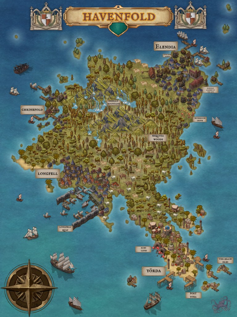 Last of the Central Isles is Havenfold, North East of Tarride, Havenfold is the Isle known best for its Academy of the Arts that teaches the historians, writers, philosophers, and artists of Atlatia. The Isle of Havenfold is known for its beautiful scenery as well as its access to education!