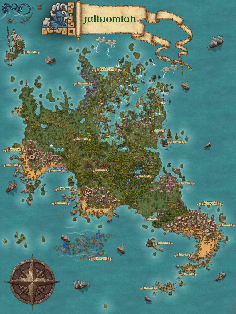 Beginning with the jungle isle, Jalinomiah. This isle is known for its dense jungles, giant volcanoes, hidden faerie city, and sleeping green dragon.