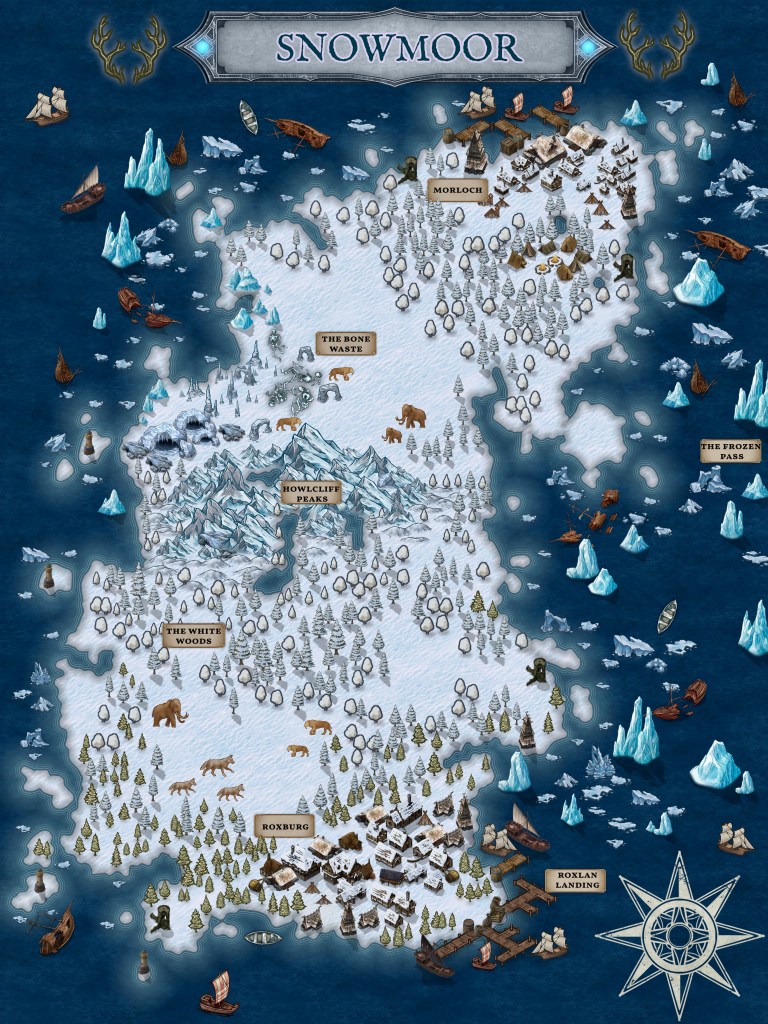 This is Snowmoor. The island of Snowmoor lies across the sea from Caldema, a freezing place with quite small towns. Nobody knows what roams up North, save for the explorers who usually don’t come back.